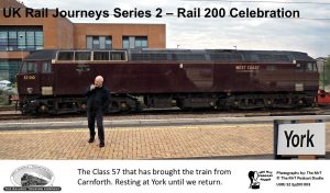 After passing through Bishop Auckland we join the Weardale Railway where we stop at Stanhope to service the Black 5. After this we travel to Newcastle and then return to York where the Black 5 leaves us and we continue homeward with the Class 57.