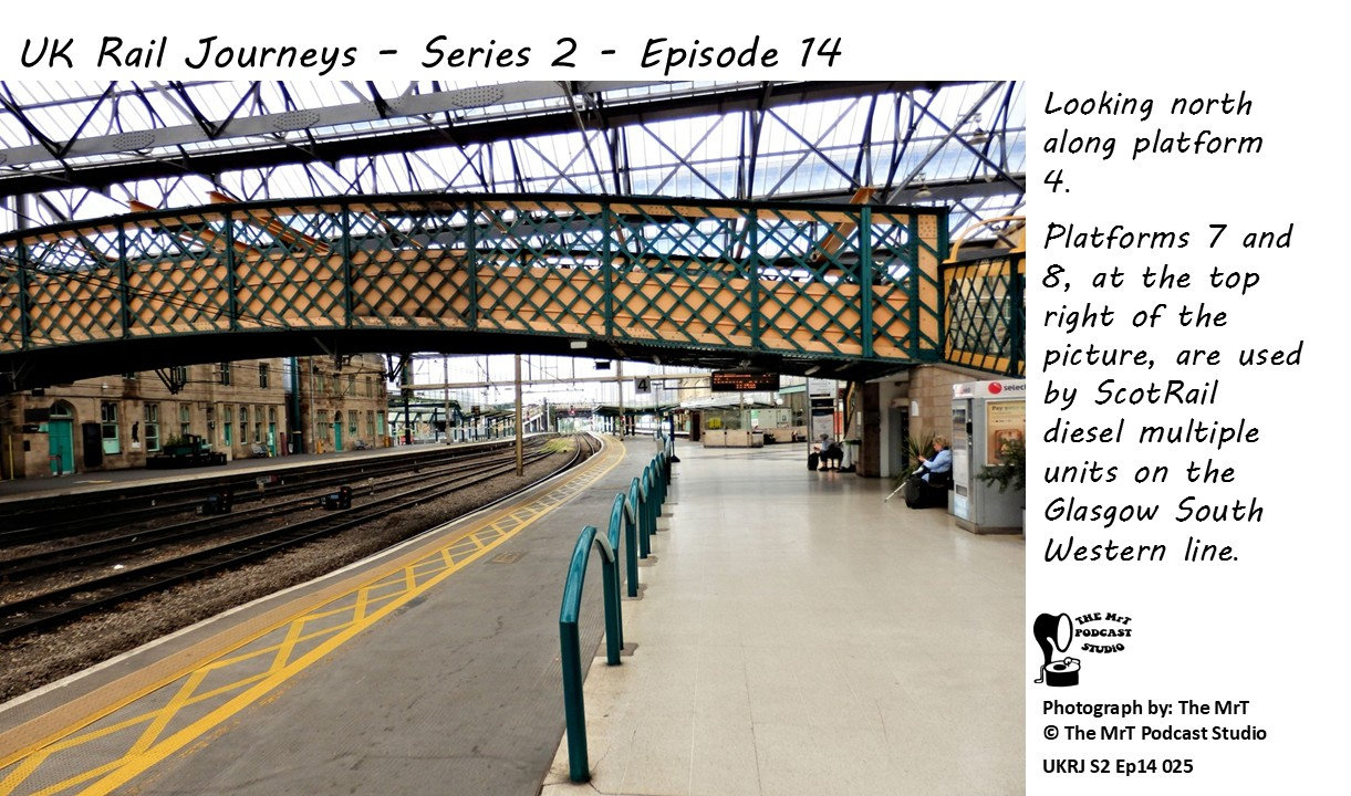After a night in the Travelodge I head back to the station to wait for my train to Glasgow. Carlisle Citadel station is a romantic, fortified style of building. The impressive foot bridge gives access to the platforms on the far side of the station.