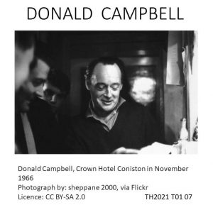 The final two segments of John’s talk feature the water speed record attempts by Malcolm (father) and Donald (son) Campbell. The final attempt in Bluebird, in January 1967, results in the death of Donald. His body is not found until 2001.