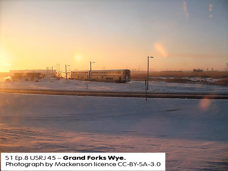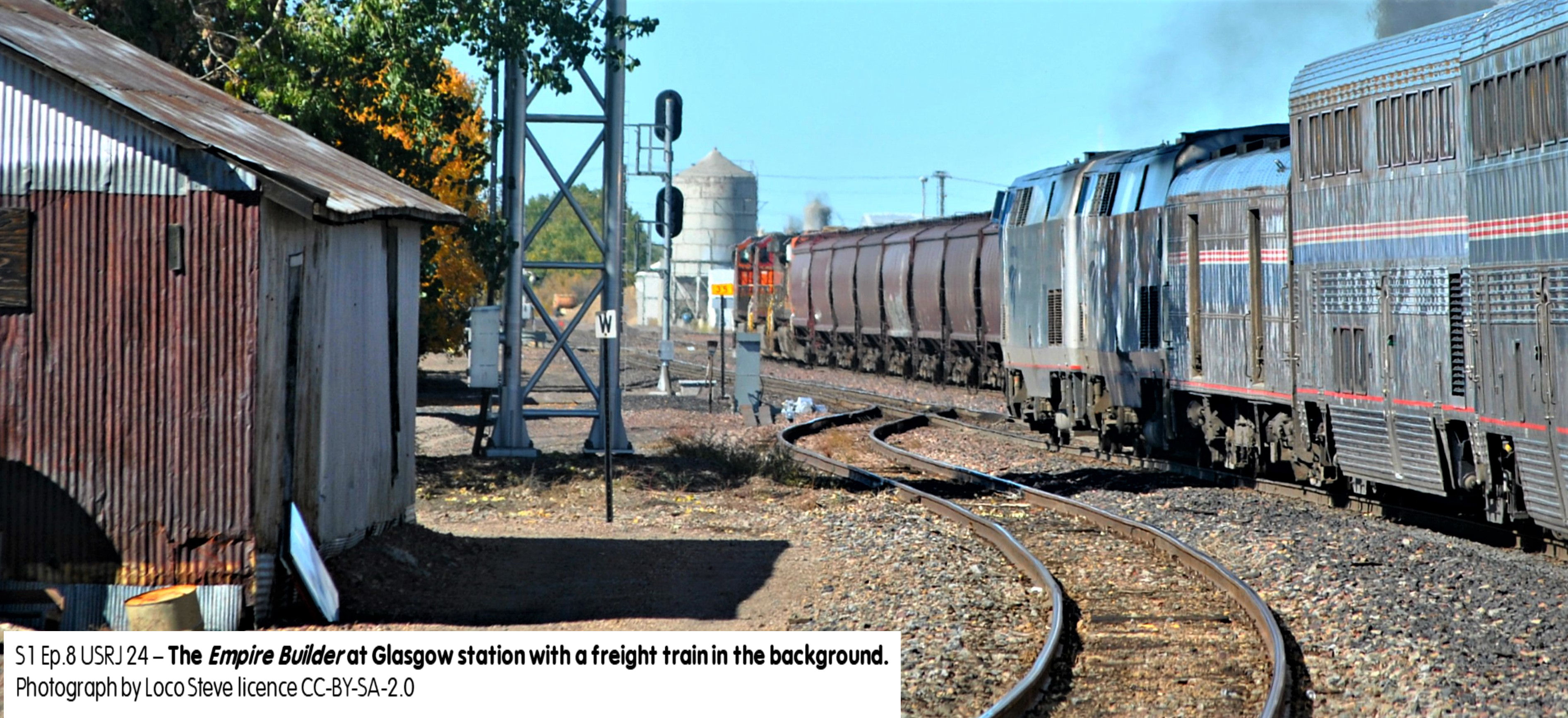 The episode concludes during the morning when the Empire Builder reaches Red Wing for a short stop where the carriages stop across the level crossing.